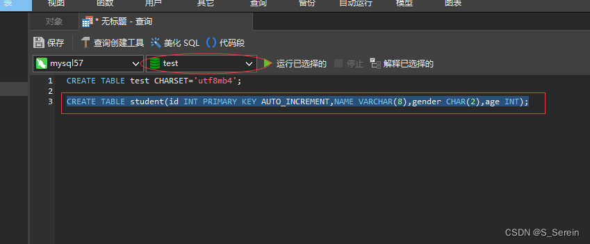 1.创建test数据库,字符编码采用utf8mb4 执行语句:CREATE TABLE test CHARSET='utf8mb4';