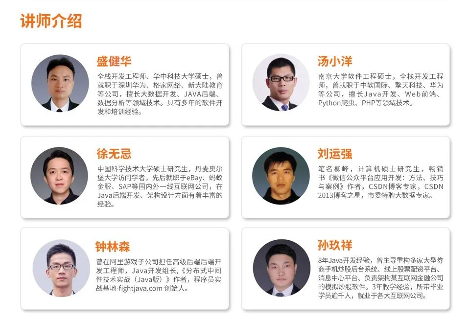 为了使这门课程能够使小白顺利上手,并使项目最贴近企业的真实开发场景,CSDN邀请到了6位在 Java 领域的一线工程师一起合力创作此课程。
