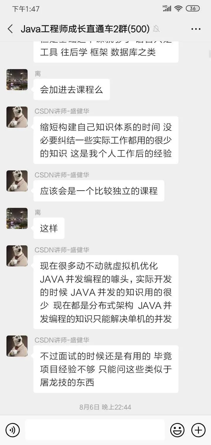 将Java理论和自己的实战经验相结合,给你讲最有用的干货,让你少走弯路。不仅如此,老师还会在技术交流群为你答疑解惑,问题不过夜,帮你高效学习。