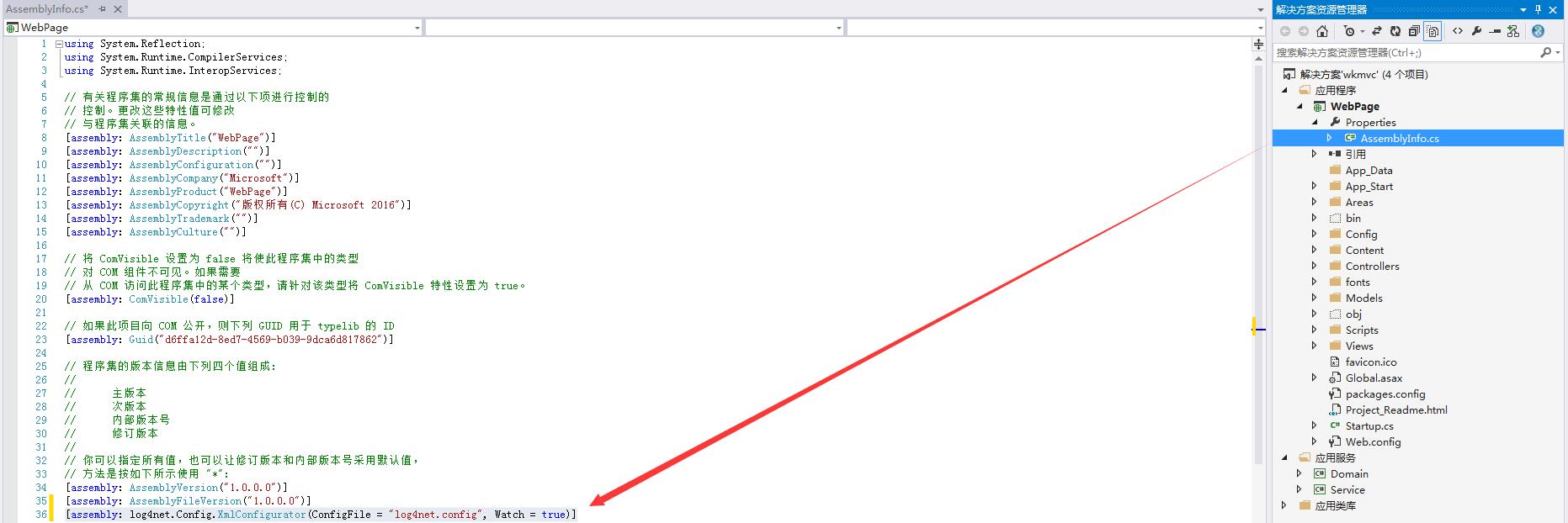 2、在项目的程序集信息描述文件中,设置Log4net的可记录属性