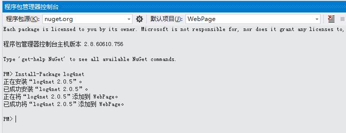 安装方式二(推荐):通过NuGet安装log4net 命令:Install-Package log4net