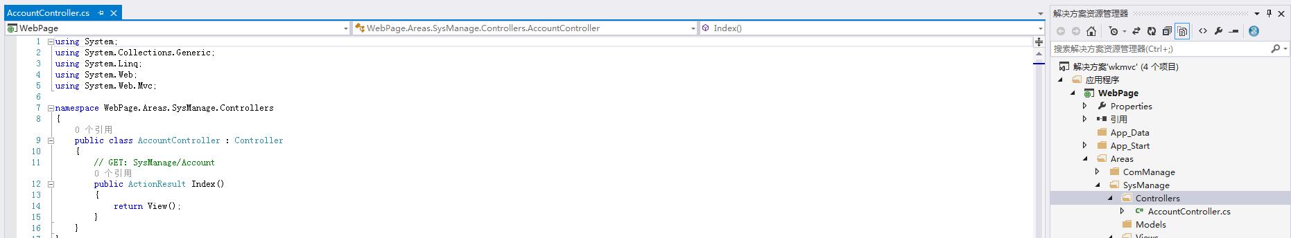 在/Areas/SysManage/Controllers 下新建AccountController控制器