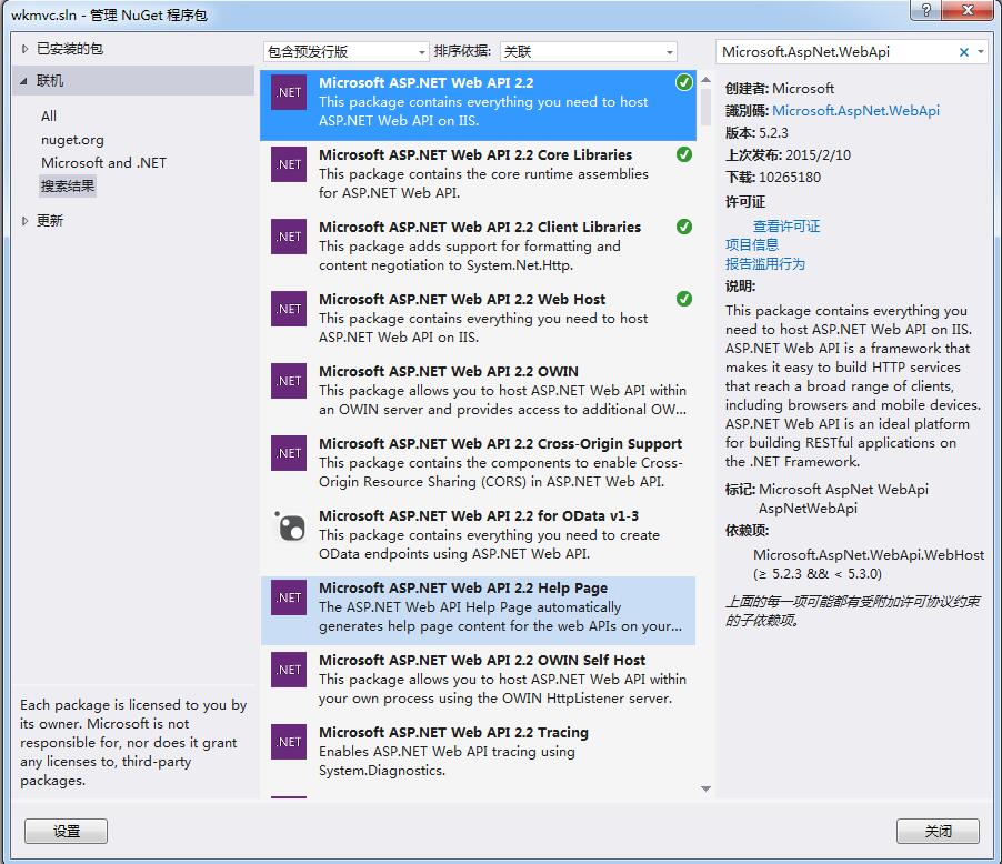 我们添加Microsoft.AspNet.WebApi(如果存在就更新一下)