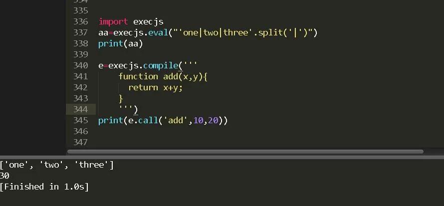 aa=execjs.eval("'one|two|three'.split('|')") #执行JavaScript代码,将字符串分割形成数组