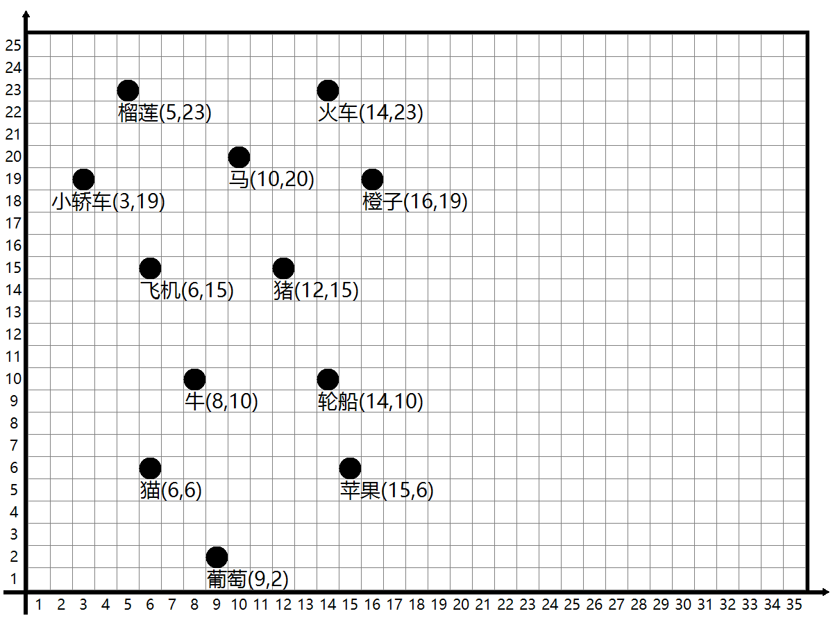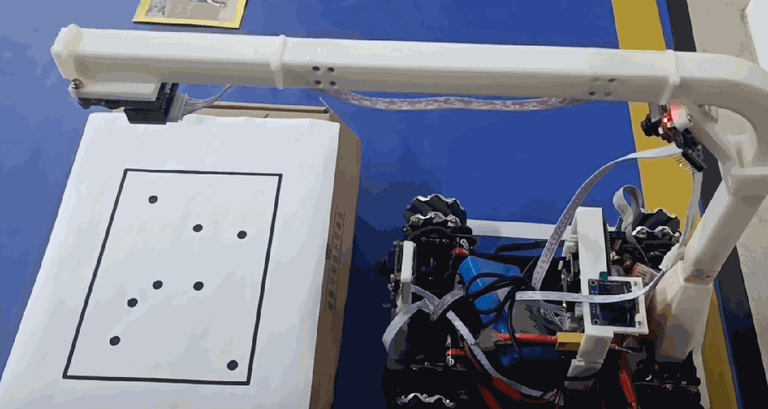 请注意,这个样例是针对线上比赛中场地为4米×5米的大小给出的目标位置A4纸。对于线下比赛对应的目标A4位置则黑点分布的范围比下面样例更大。