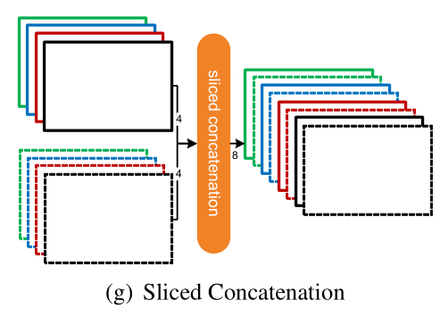 通过切片拼接和分组卷积,像素的融合激活由以下公式给出: