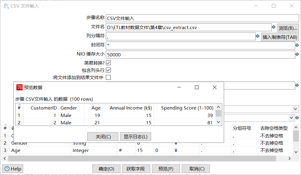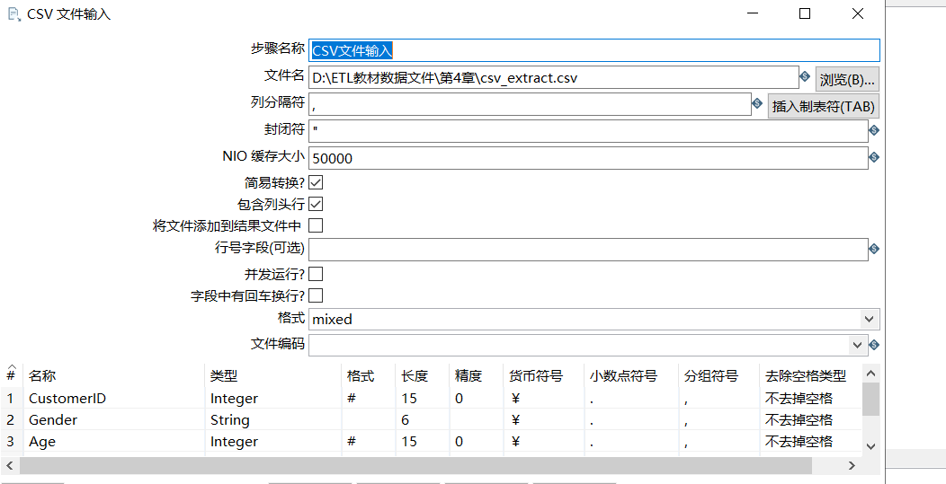 然后进行配置CSV文件配置按照书上的步骤操作即可,刘兰获取文件名,然后勾选选项