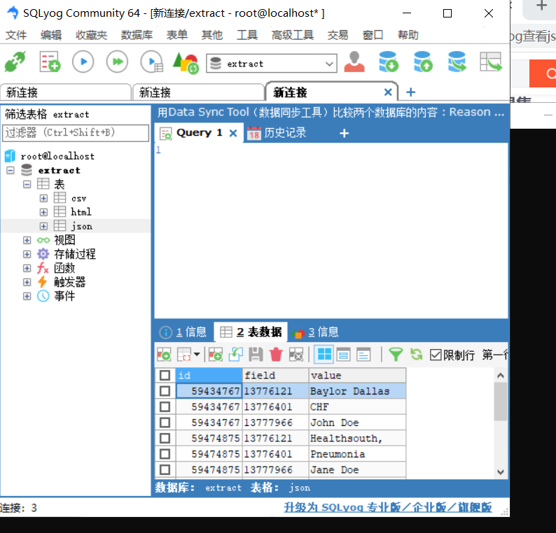 在转换完成 之后在进行查看是否完成了转换,打开SQLyog进行查询。