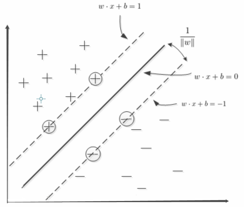 w⋅x+b=0,所以支持向量距离最近,即对应的函数值