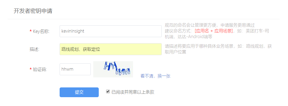 2.1 申请申请开发者key(https://lbs.qq.com/console/key.html)