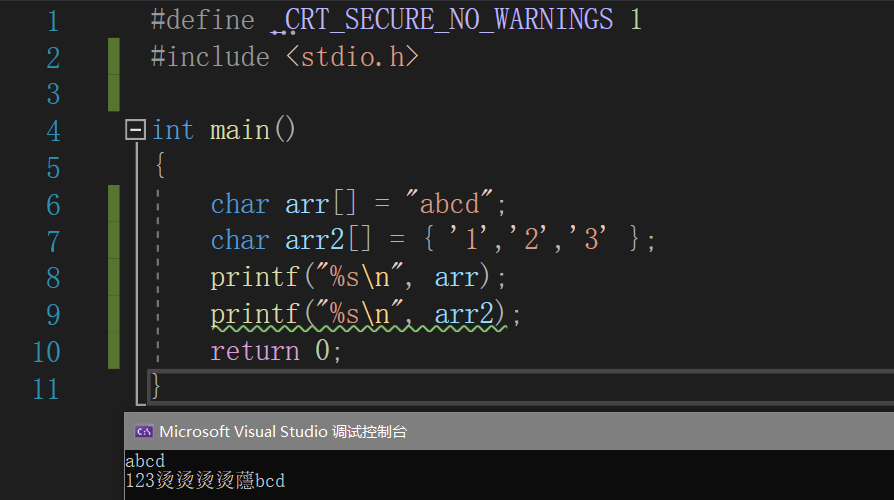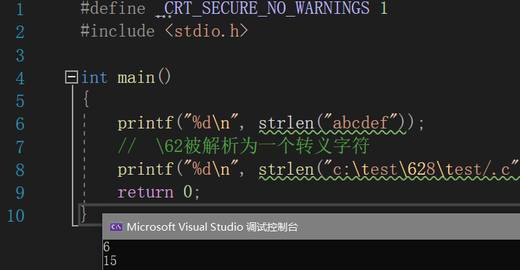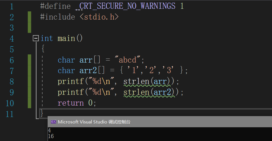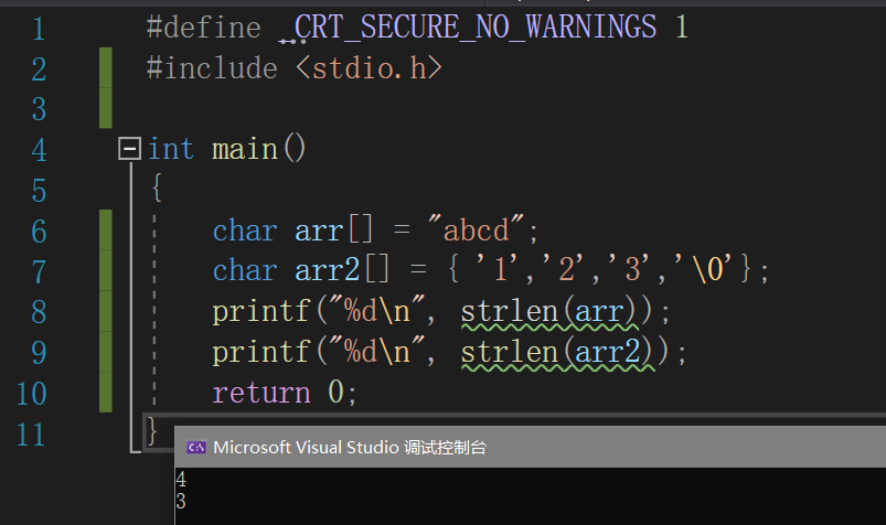 【注意】:字符串的结束标志是一个‘ ’的转义字符,在用strlen()计算字符串长度的时候'
