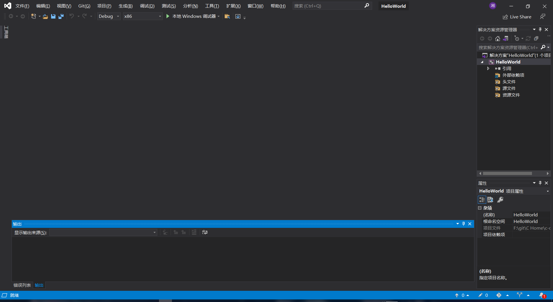 创建之后,进入VS里的界面如下: