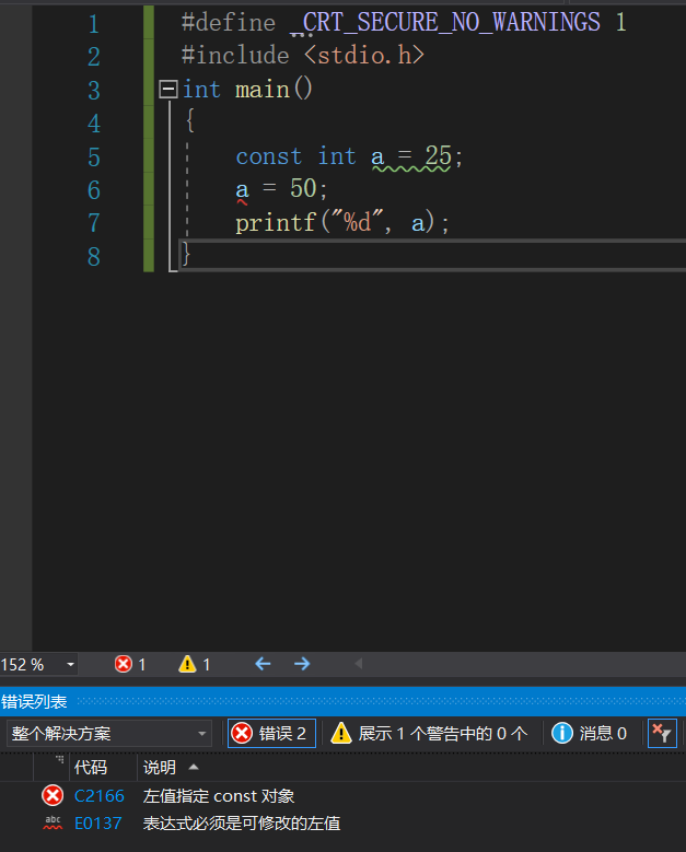 此处经修饰后,如果再对齐进行赋值,则会报错。