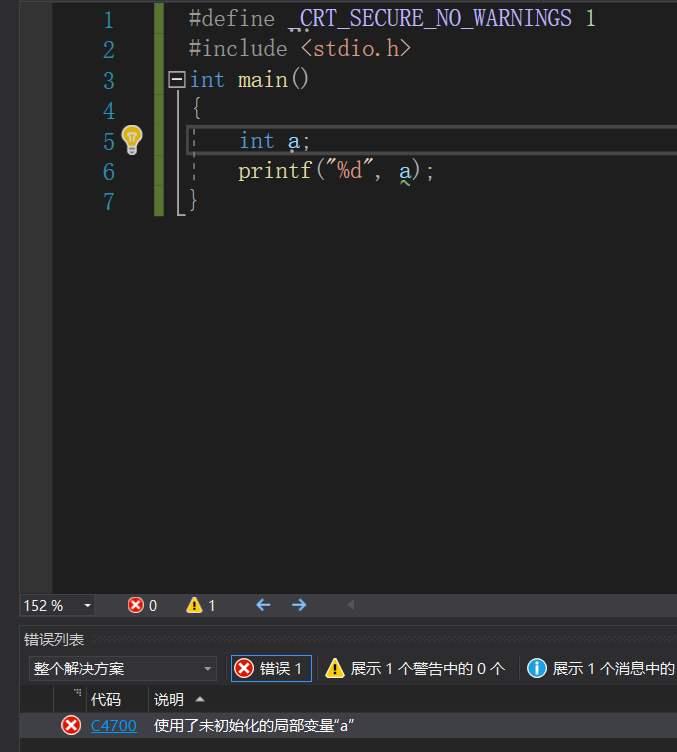 例如以下代码(定义了一个整型变量a):