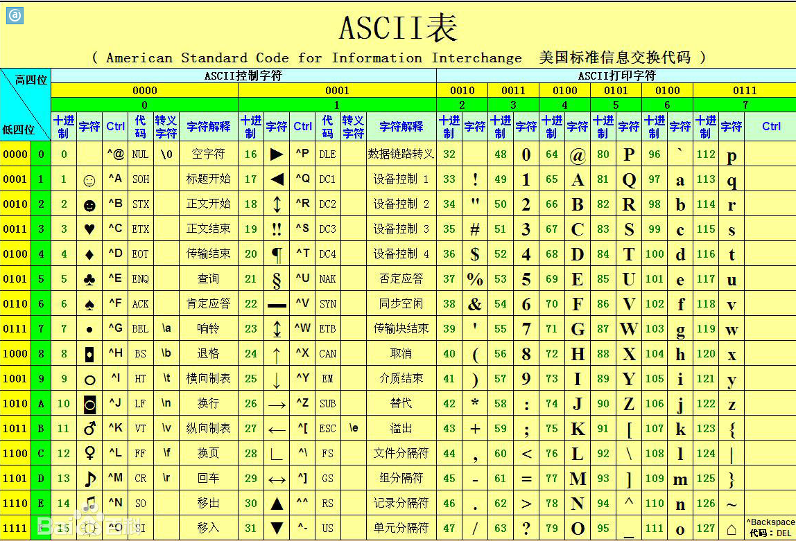 1.1、ASCII码表