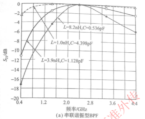 核心思想:BPF基本上是谐振电路。谐振电路分为串联谐振电路和并联谐振电路,对于串联谐振电路,若L和C无损耗,则在谐振频率时阻抗变为零;对于并联谐振电路,谐振频率时阻抗变为无穷大。对于串联谐振电路可知,L越大,衰减特性越陡;对于并联谐振电路可知,L越小C越大,衰减特性越陡。