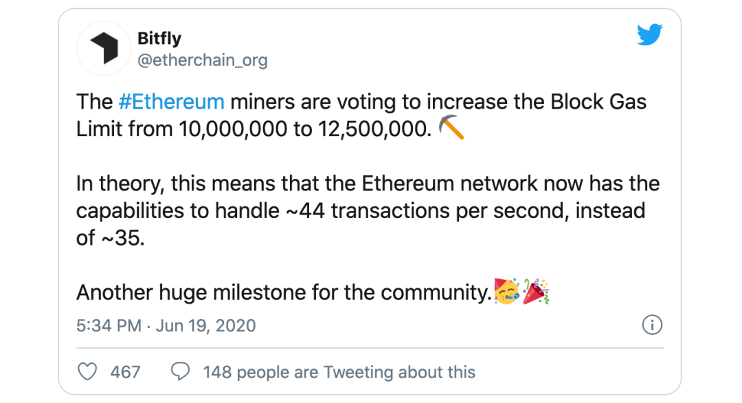 最近两大矿池一致决定提升 gas 产量 25%,颇有争议。目的本是通过增加 gas 供应来缓解高交易费压力。目前我们所看到的,交易需求增长快过 gas 上限增长速度。这就造成价格暂时趋缓,最终还是会上升。