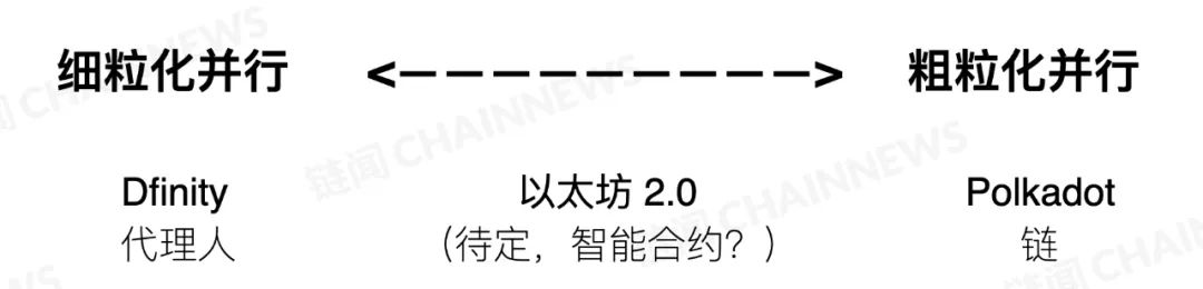两个项目各占粒度光谱两边:Dfinity 在细粒度一端,每个代理人有自己的域,每次代理人交互都是异步。Near 协议细粒度化稍小,每个合约都有自己的域。粗粒度一端是波卡,其域是就是整个分片,这种情况称为「平行链」更准确。从 DApp 开发者角度判断以太坊 2.0 为时尚早。Eth1EE (Eth2 上的 Eth1 执行环境)将为粗粒度,有与分片一致的界限,目前的以太坊会成为一个分片。细粒度解决方案的优势是透明;合约间调用无论是否跨分片边界,都能看上去一样。这就进而允许在分片间移动合约来轻松平衡负载。