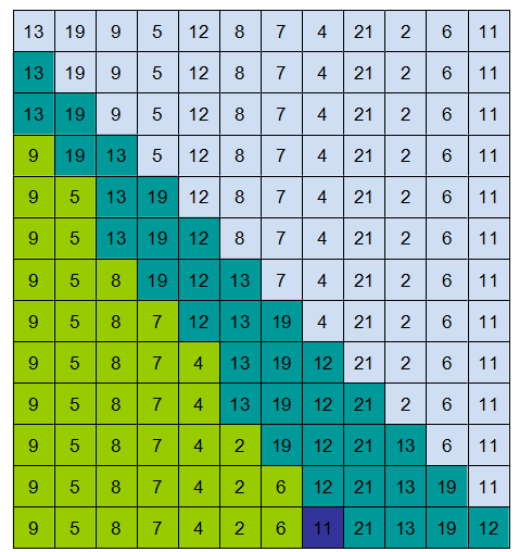 7.1-1 说明PARTITION过程作用于输入数组 A = <13,19,9,5,12,8,7,4,21,2,6,11> 上的过程。