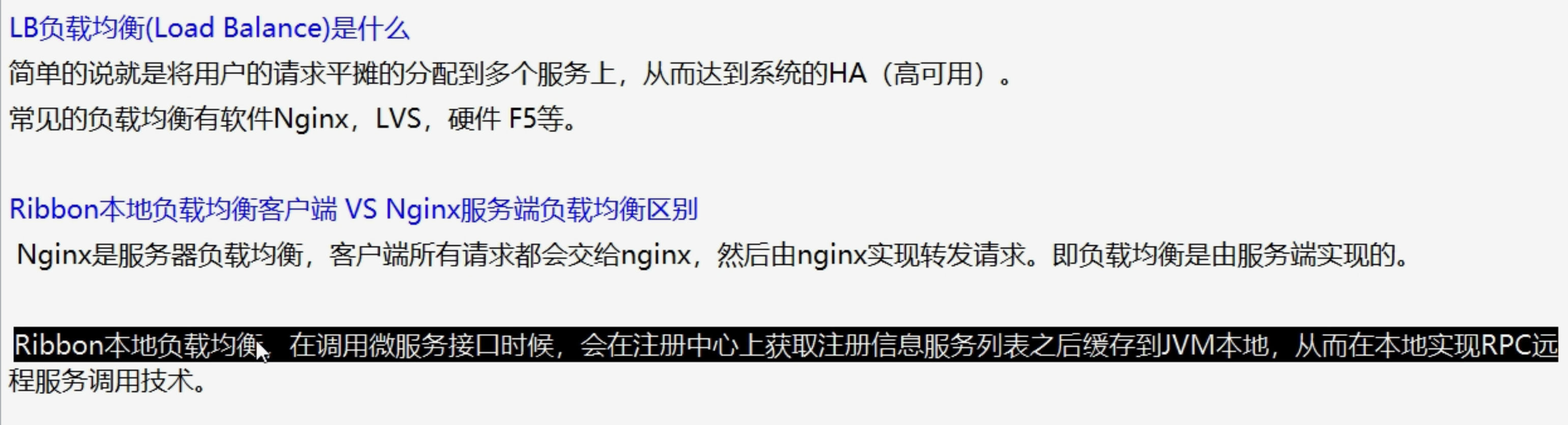 Nginx适合于服务器端实现负载均衡 比如Tomcat ,Ribbon适合与在微服务中RPC远程调用实现本地服务负载均衡,比如Dubbo、SpringCloud中都是采用本地负载均衡。