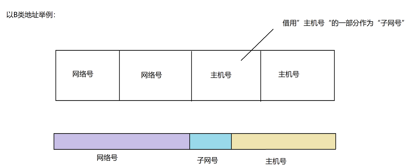 - 一个IPV4地址被分成了三段:网络号+子网号+主机号。