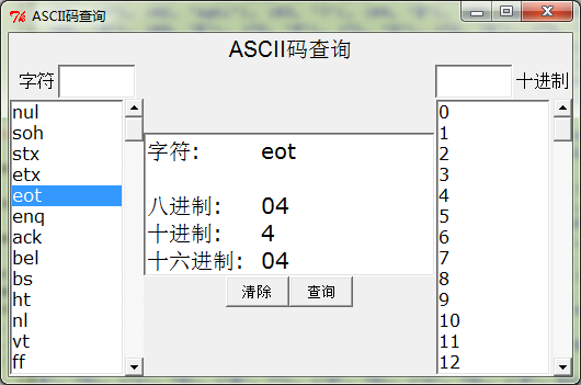 作为实践, 用Tkinter做了个ascii码转化查询表