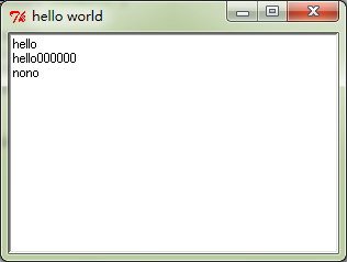 # -*- coding: cp936 -*- from Tkinter import * root = Tk() root.title("hello world") root.geometry('300x200') t = Text(root) t.insert(1.0, 'hellon') t.insert(END, 'hello000000n') t.insert(END, 'nono') t.pack() root.mainloop()