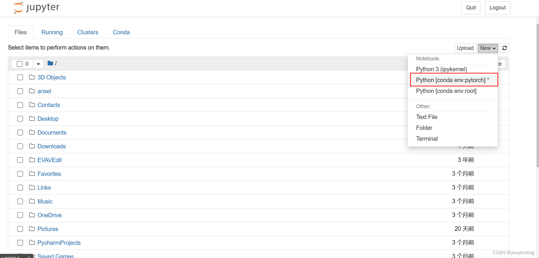 step3. 在打开的jupyter notebook中,选择虚拟环境,新建项目
