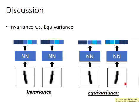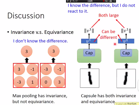 CNN对同一类的图片的输出是相同的,但是capsule对进行翻转的同类图片,输出向量也是翻转(取负数)的结果。