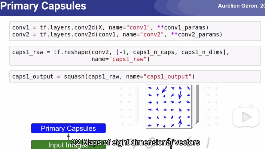 Primary_capsule_layer(绿色的初始胶囊激活向量)=2*卷积层+reshape+squash: