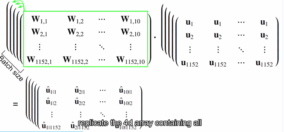 使用9*9的filter,得到ReLU后的卷积结果,将其分组得到32个caps并flatten成1152*8,后全连接得到10个16维的capsule.将每个胶囊计算的范数算argmax得到胶囊的标号,即分类标签。