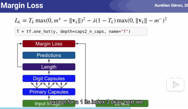 Margin loss:使用onehot确定当前变量K和预测标签是否相同,通过上述函数表达式计算Lk.