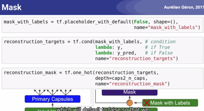 在训练中,用真实label的onehot向量mask与digit capsules的输出相乘;
