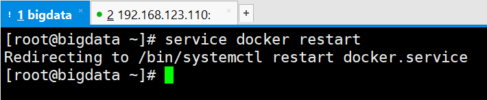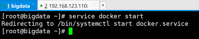 [root@bigdata ~]# service docker start Redirecting to /bin/systemctl start docker.service [root@bigdata ~]#