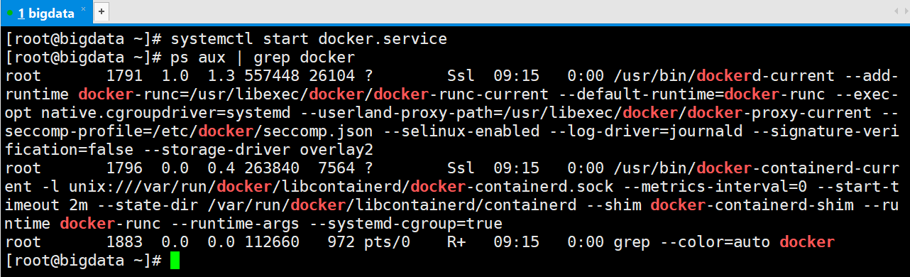 [root@bigdata ~]# systemctl start docker.service