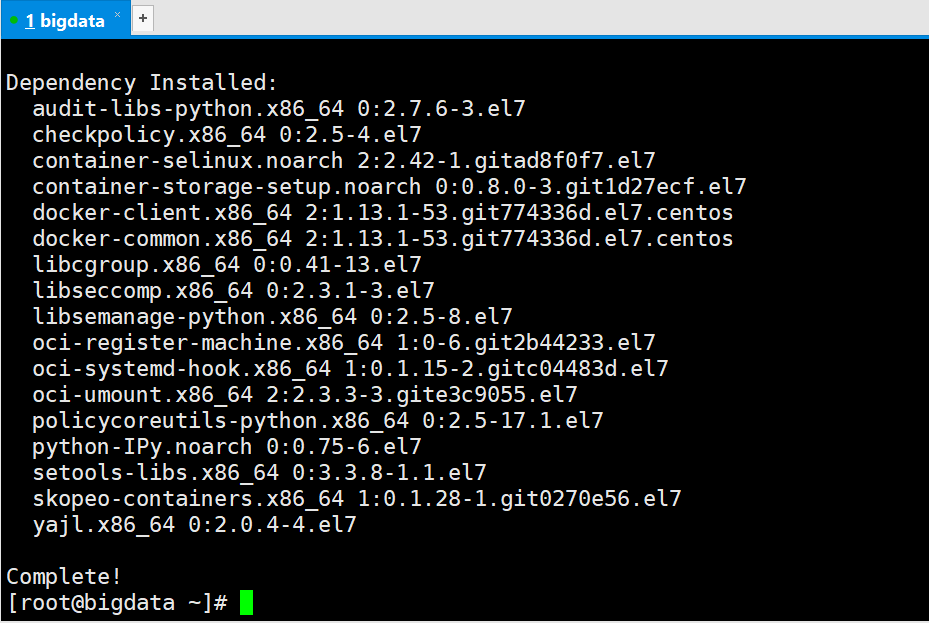 [root@bigdata ~]# yum -y install docker