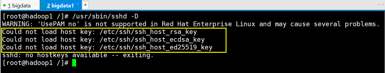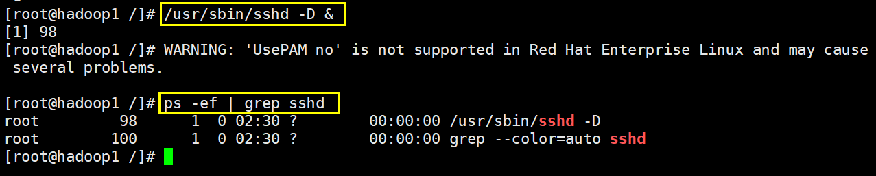 [root@hadoop1 /]# /usr/sbin/sshd -D