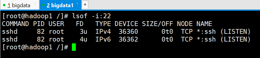[root@hadoop1 /]# lsof -i:22