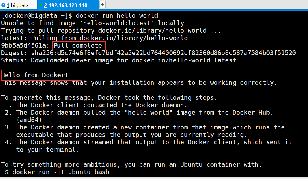 [docker@bigdata ~]$ docker run hello-world