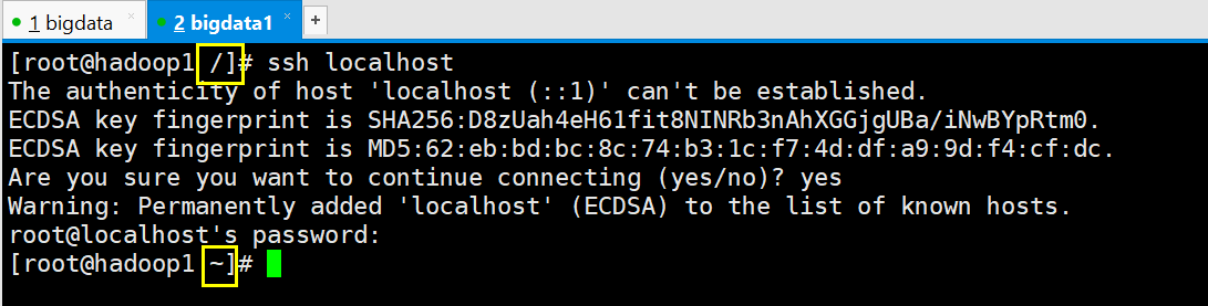 [root@hadoop1 .ssh]# ssh localhost