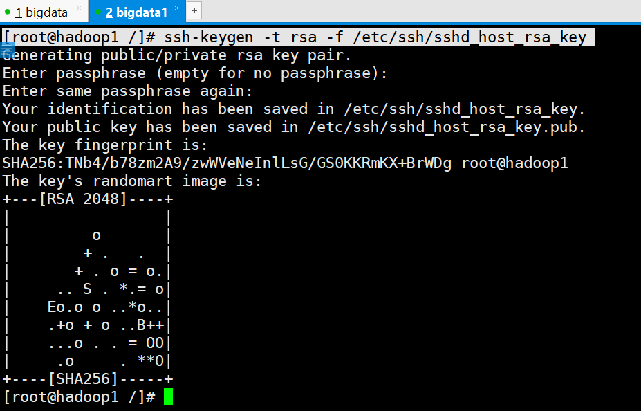 [root@hadoop1 /]# ssh-keygen -t rsa -f /etc/ssh/ssh_host_rsa_key