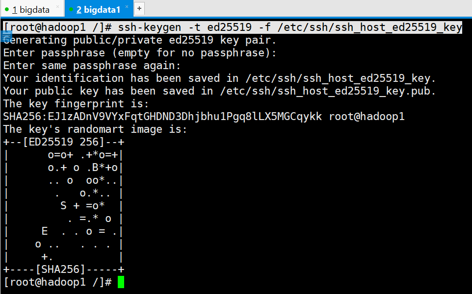 [root@hadoop1 /]# ssh-keygen -t ed25519 -f /etc/ssh/ssh_host_ed25519_key