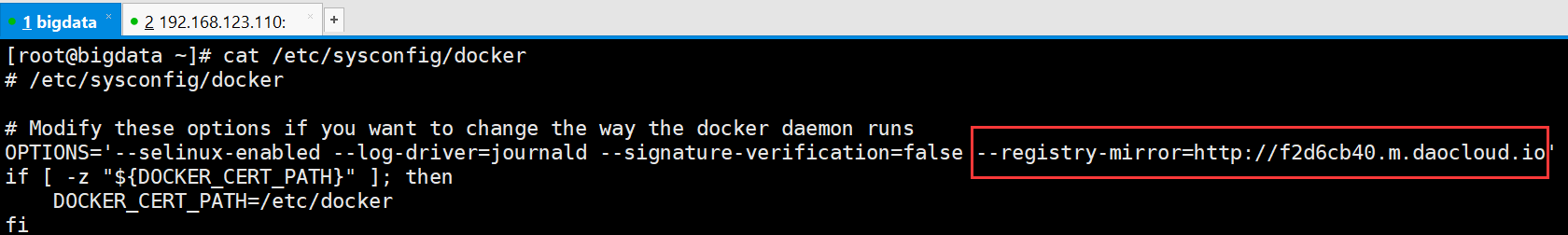 [root@bigdata ~]# cat /etc/sysconfig/docker