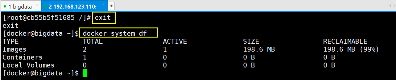 [docker@bigdata ~]$ docker system df