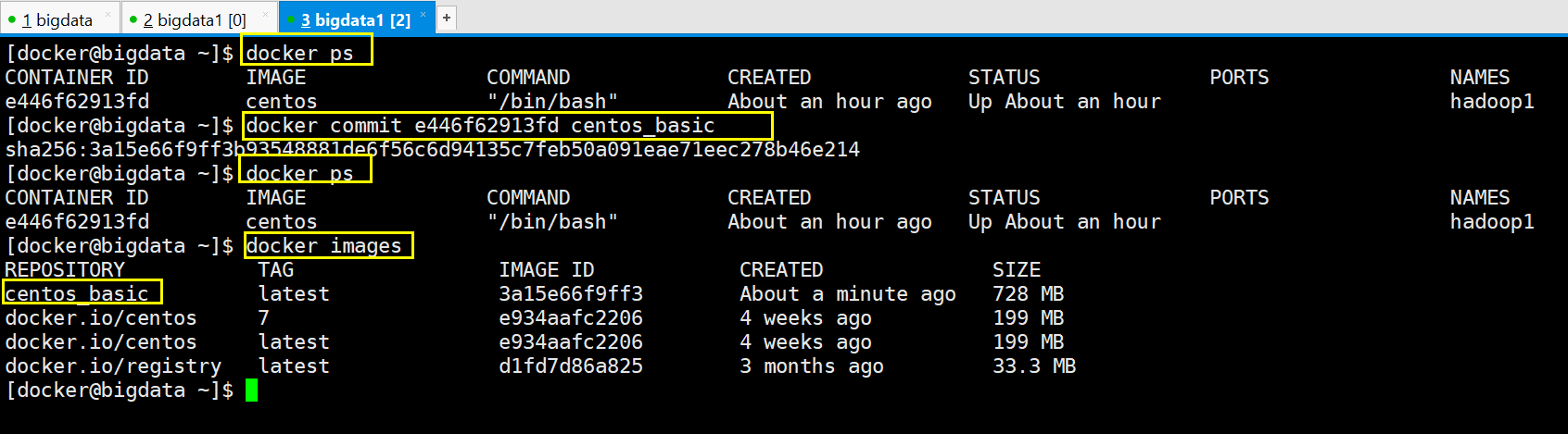 [docker@bigdata ~]$ docker pull centos:7
