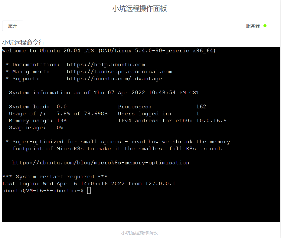 - app安装于服务器内部,通过web向管理员提供操作,这波操作就可以让运维工作可以随时随地的查看机器运行状况和各种操作,并且在手机端也做了一定的适配,所以通过手机也可以访问操作