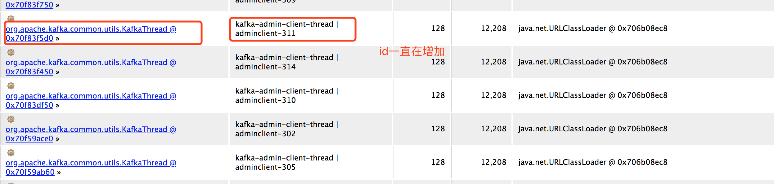 从这里就可以看出,线程一直在增加,且资源一直未释放,但是有哪些线程一直在创建申请资源呢,一时也摸不着头绪,所以要知道哪些线程,需要进一步分析。