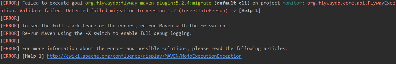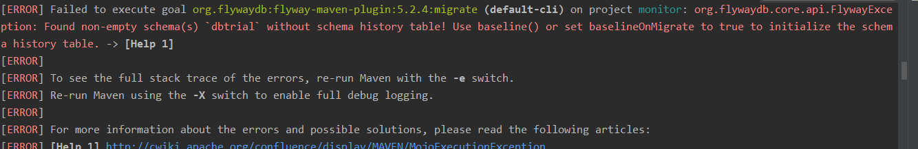 在项目的根目录去运行Flyway命令。例如此项目放在E:workspaceideamonitor中,则需要在此目录下执行命令。