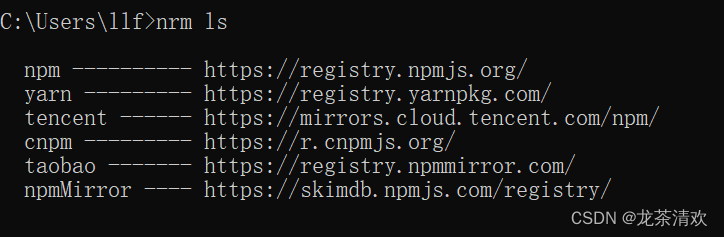 nrm ls 查看包管理工具仓库配置列表