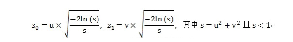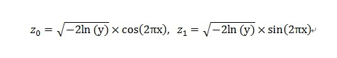 2、nextGaussian():生成一个服从正态分布N(0,1)的随机数。这一部分math3也是利用了Box–Muller变换公式,但是与numpy不同的是,它没有采用Box–Muller极坐标公式,而是使用Box–Muller基本公式,即:假设x, y是两个服从均匀分布的、0到1之间的随机数,则以下z0、z1服从正态分布N(0, 1):